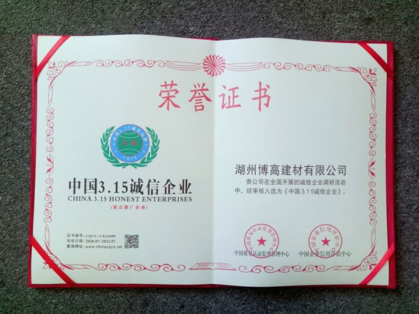 浙江省3.15誠(chéng)信質(zhì)量服務(wù)示范單位