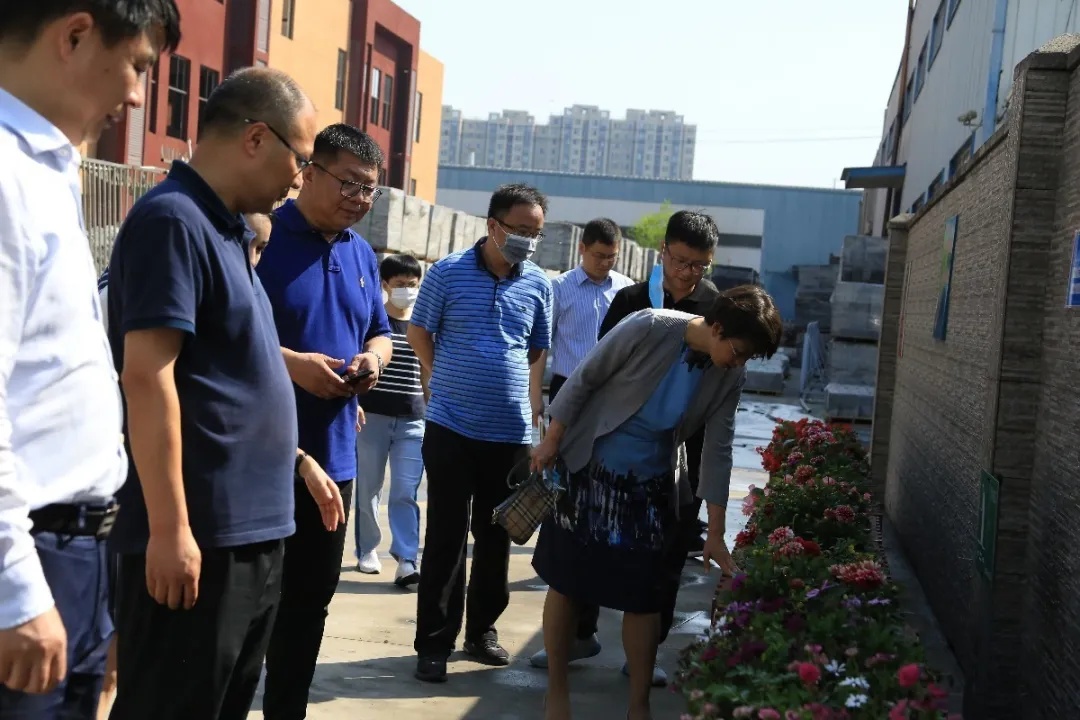 領(lǐng)導(dǎo)們隨后移步至一號辦公樓前,近距離觀摩公司花箱式交通隔離護(hù)欄、花箱式人行道隔離護(hù)欄以及仿石樹池等新型仿石材產(chǎn)品。
