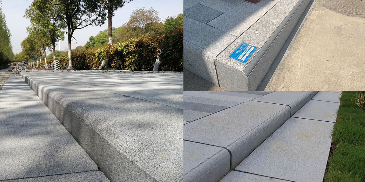 可生產(chǎn)直面和坡面兩種外形的側石,具有天然石材的視覺效果。
