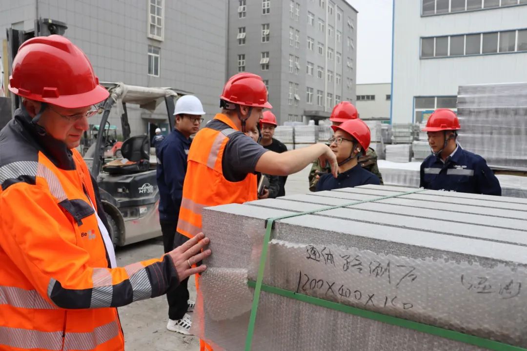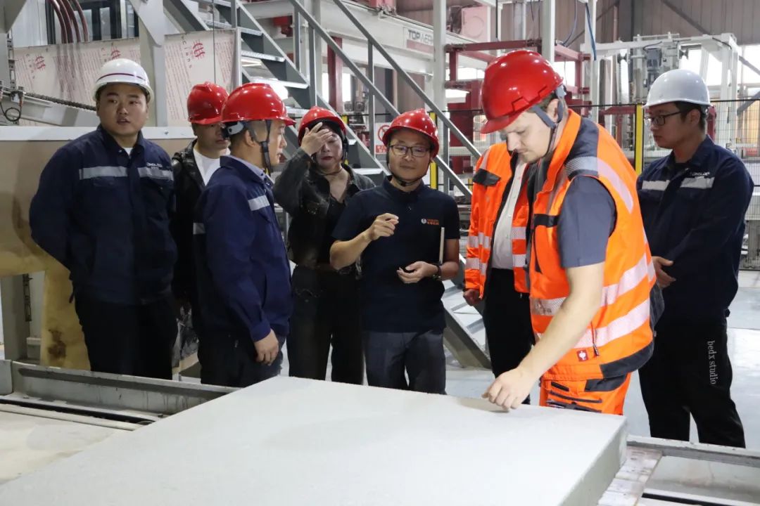 "Unbelievable"難以置信的,是德國專家看到宏路生產(chǎn)的1200*1100*120mm仿石材大磚給出的第一個形容詞。雖然仿石材大磚目前已被歐洲、美國、日本等發(fā)達國家廣泛使用,但是在中國國內還是遠未普及,沒想到在合肥既能看到如此高質量的仿石材大磚,令人難以置信。隨后,專家也進一步對仿石材大磚的工藝流程、原材料把控和成品檢驗等方面進行了交流指導。