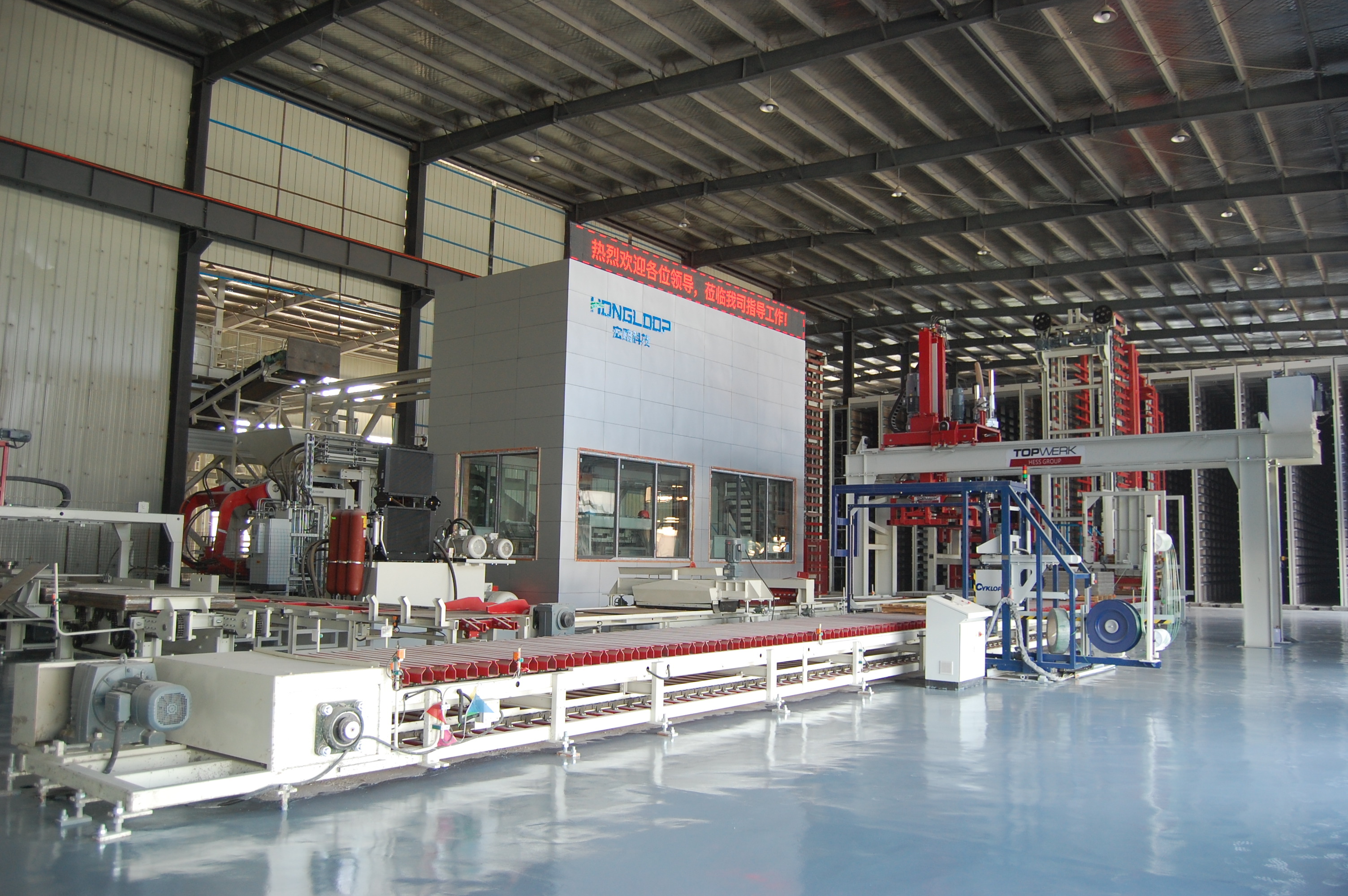公司先后投資2億多元,引進(jìn)了兩條當(dāng)前全球先進(jìn)的全自動化砌塊生產(chǎn)線-德國海斯RH2000-4和現(xiàn)代化生產(chǎn)車間,提高了生產(chǎn)效率。整個生產(chǎn)車間分為四大自動化系統(tǒng): ?(1)原材料自動化攪拌系統(tǒng):宏路采用3方底料攪拌機和0.75方的面料攪拌機。 ?(2)自動化的主機生產(chǎn)系統(tǒng):德國海斯RH2000-4主機設(shè)備,生產(chǎn)速度快、效率高,道板磚日產(chǎn)達(dá)5000平方、仿石坡面?zhèn)仁债a(chǎn)18000米-25000米,產(chǎn)品密實度高,道板磚產(chǎn)品強度可達(dá)50-80兆帕,抗折度在4.5兆帕以上 ?(3)自動化輕鋼養(yǎng)護(hù)系統(tǒng):安徽宏路的輕鋼養(yǎng)護(hù)窯21孔窯22層高,容量可達(dá)5720多張托盤,同時使用德國電磁蒸汽及除濕技術(shù)、智能化控制,產(chǎn)品在規(guī)定的養(yǎng)護(hù)工藝下,既可加溫,除濕,又可降溫,避免了產(chǎn)品的返堿現(xiàn)象,24-48小時出窯后產(chǎn)品可達(dá)30兆帕以上,28天強度可達(dá)50兆帕以上。 ?(4)自動化打包系統(tǒng):德國賽克全套的自動化打包設(shè)備每托產(chǎn)品25秒打包,纏繞設(shè)備每1分鐘完成一托纏繞,提高成品打包標(biāo)準(zhǔn),用實力證明了宏路的科技生產(chǎn)力。 |