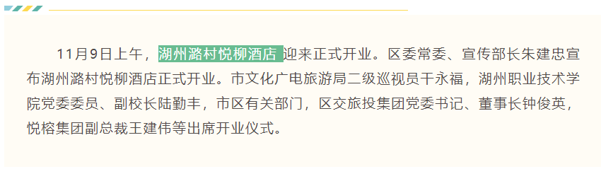儀式上,與會(huì)人員共同參觀了湖州潞村悅柳酒店。